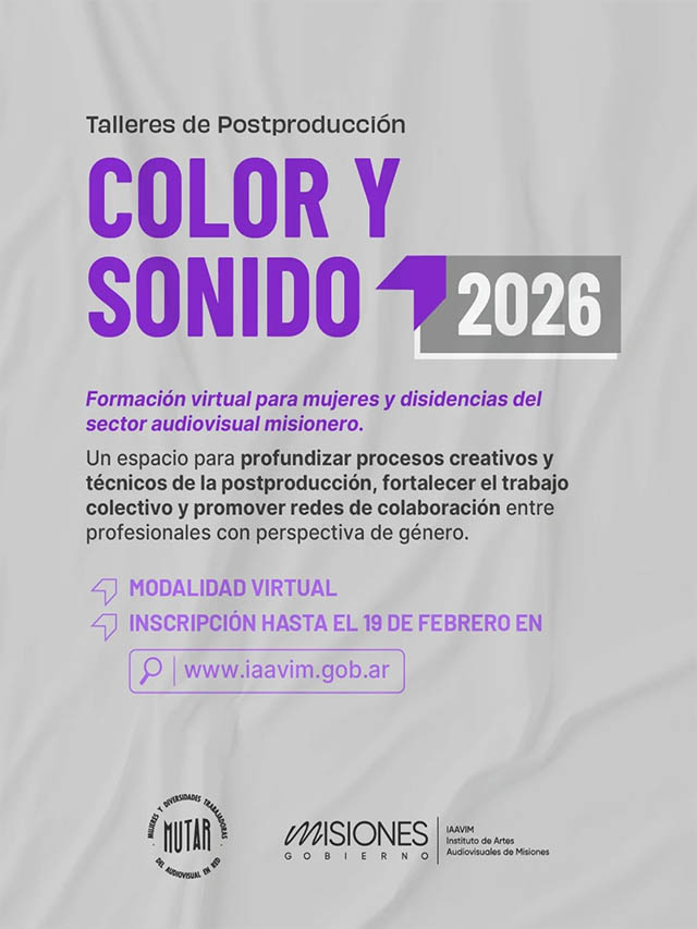 AGENCIA MISIONES.UNO | El Instituto de Artes Audiovisuales de Misiones (IAAviM), junto a la Colectiva de Mujeres y Diversidades Trabajadoras del Audiovisual en Red (MUTAR), lanzó una nueva edición de los talleres de postproducción de sonido y color, con el objetivo de fortalecer la formación técnica y profesional en el sector audiovisual.