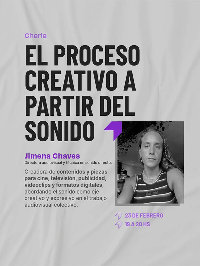 El cronograma comenzará el 23 de febrero con charlas sobre el proceso creativo desde el color y el sonido. Los talleres prácticos de postproducción en color se desarrollarán los días 24 y 26 de febrero, mientras que los de postproducción de sonido tendrán lugar el 25 y 27 de febrero, todos en modalidad virtual.